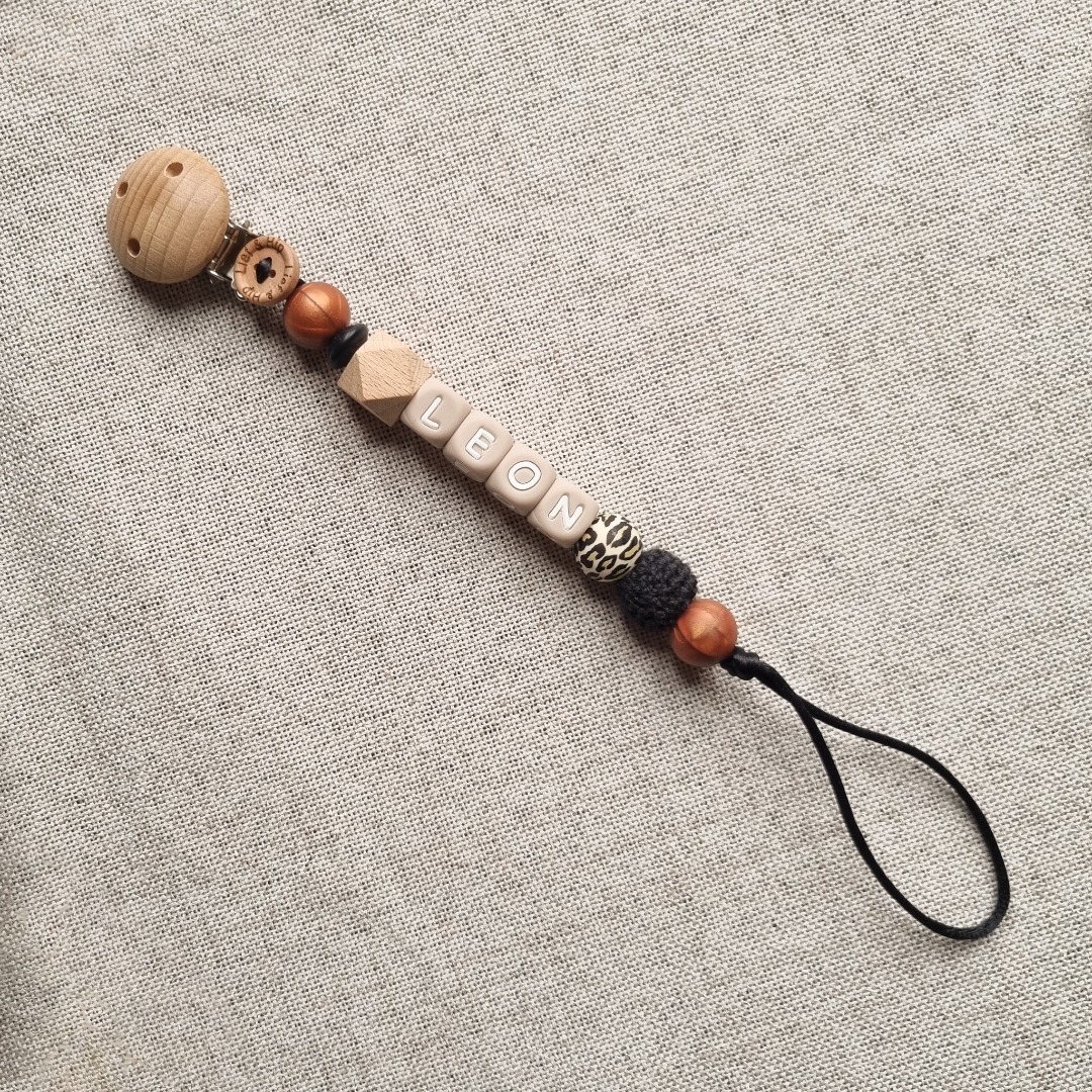 Speenkoord Leon is gemaakt met stoere kleuren zoals Koper, Zwart en Luipaard kralen.