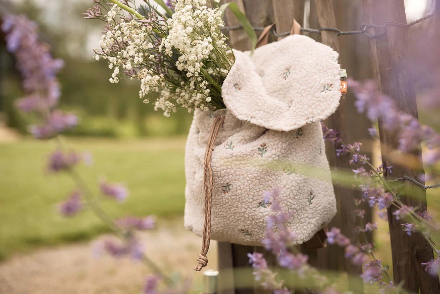 Dit zachte teddy rugtasje heeft verstelbare schouderbanden, een handig extra opbergvakje met ritsje aan de binnenkant, een met foam verstevigde onderkant en een beschrijfbaar naamplaatje. De binnenvoering heeft een leuke print met vlekjes.